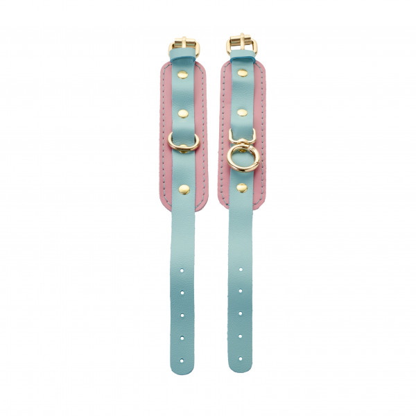 Оковы из коллекции "Crazy Handmade" в потрясающем сочетании цветов - розовая кожа и кожа цвета тиффани - это, отличный аксессуар для самой надежной фиксации!
