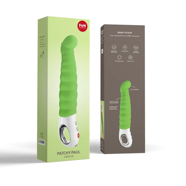 "Fun Factory Patchy Paul G5" - это, рельеф­ный виб­ра­тор с изогну­той голов­кой для мак­сималь­ной стиму­ляции каж­дой кле­точки лона и для самого яркого ваги­наль­ного оргазма!